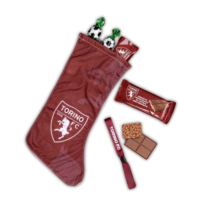 Bring home all the magic of a true Granata Christmas! The Fan Stocking is the official Torino F.C. Befana stocking, created for supporters who live their passion for the Toro and want to celebrate with something truly special. The stocking, decorated with the club’s official logo, contains a selection of treats perfect for both young and adult fans: 140 g of fine milk and dark chocolate, including crispy snacks and hazelnut-filled pralines. Inside, you will also find an official Torino F.C. surprise, making Epiphany day even more exciting. A fun, sweet, and unmistakably Granata gift—perfect to hang by the tree or alongside the traditional Befana stocking.