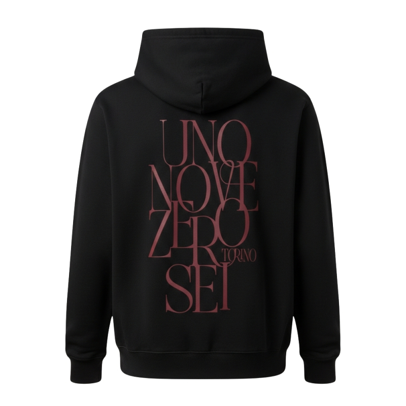 Un capo deciso, nato per chi il Toro lo vive senza filtri. La felpa UNO NOVE ZERO SEI – Black Edition prende l’anno di fondazione del Club e lo trasforma in un segno di appartenenza forte, diretto, senza compromessi. Realizzata in morbido cotone, felpata all’interno, è pensata per essere indossata in curva come fuori, quando serve farsi riconoscere senza dire una parola. Sul retro, la scritta “UNO NOVE ZERO SEI TORINO” domina la scena con un’estetica essenziale e potente: una data, una città, un’identità. Il nero non addolcisce il messaggio. Lo rende più duro. Perché il Toro non è solo un colore. È un modo di stare al mondo.