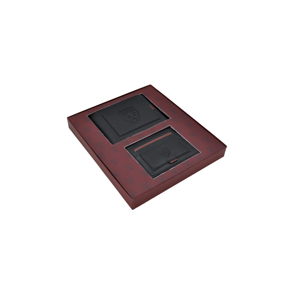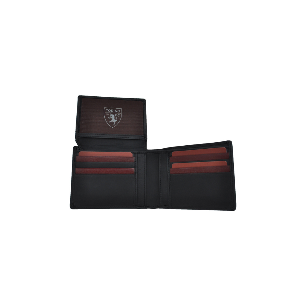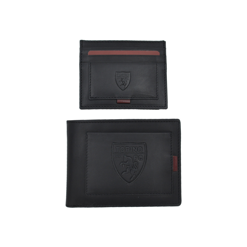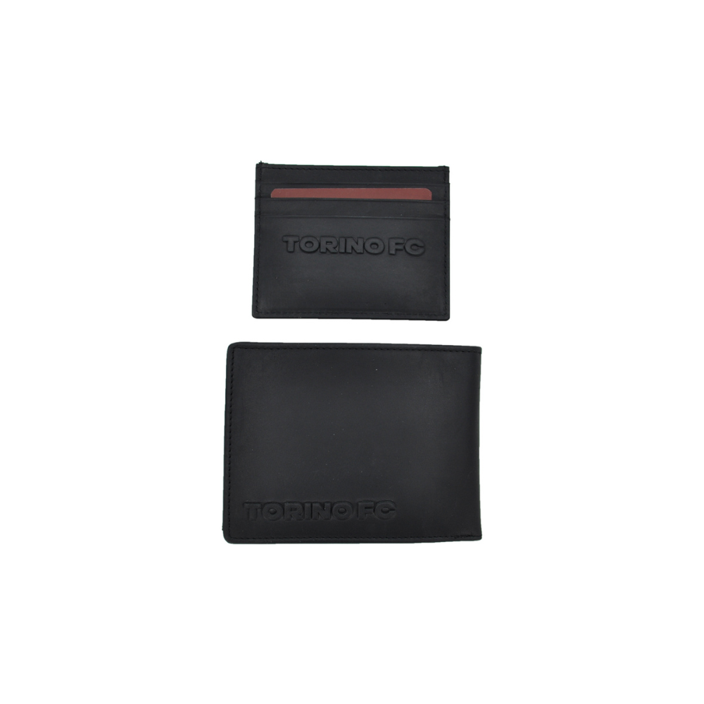 Mostra il tuo orgoglio per il Torino FC con questa elegante parure composta da un portafoglio e un portacarte in vera pelle di alta qualità. Il design raffinato e funzionale è impreziosito dal logo ufficiale del club, in rilievo sulla superficie.