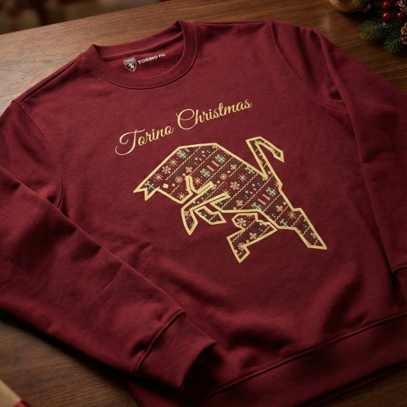 Celebra il Natale con il cuore granata. La FELPA GIROCOLLO “TORINO CHRISTMAS” è il prodotto di punta della nuova XMAS COLLECTION, pensata per tutti i tifosi che vogliono portare la passione del Toro anche durante le feste. Il design presenta una stampa esclusiva con l’iconico logo del Toro anni ’80, reinterpretato con un pattern natalizio dedicato, arricchito dalla scritta elegante “Torino Christmas”. Il modello girocollo, caldo e confortevole, è realizzato con una composizione 60% cotone e 40% poliestere, perfetta per l’inverno e ideale come regalo granata da mettere sotto l’albero. Un capo unico, creato per unire tradizione, festa e identità granata.